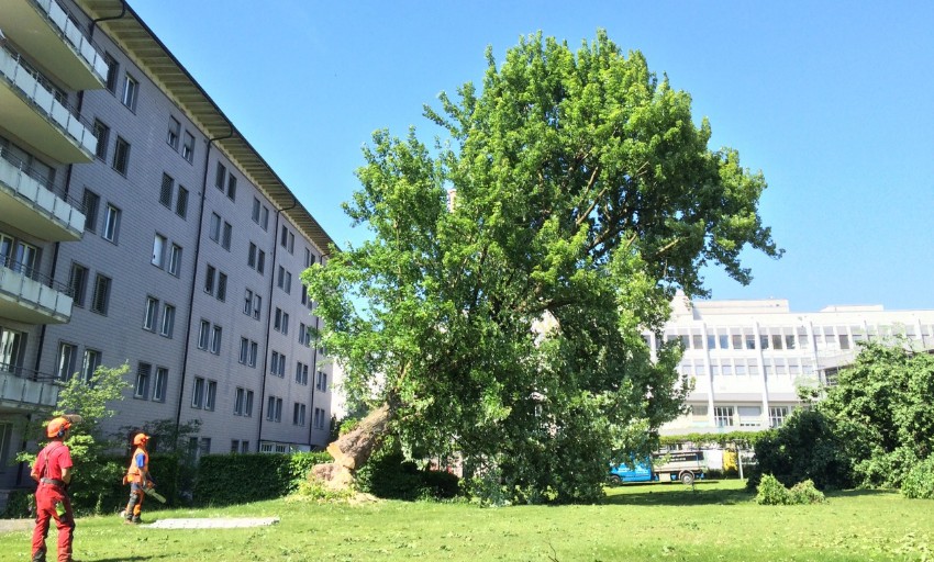 Die Brandenberger Spezialholzerei erhielt erfreulicherweise den Zuschlag für die Baumfällarbeiten beim Kantonsspital Winterthur.